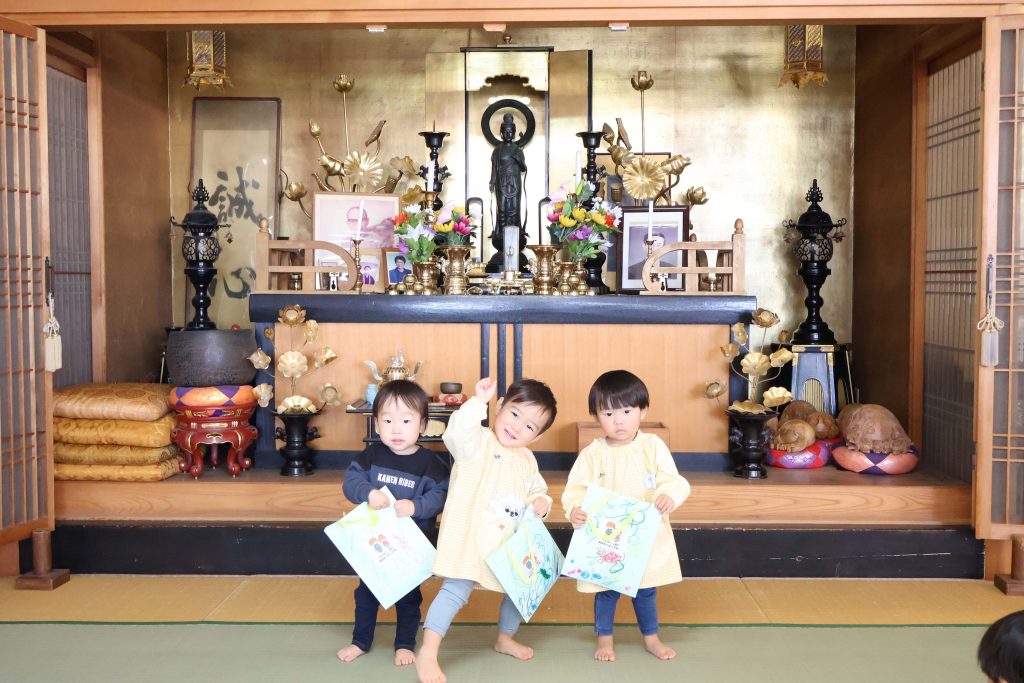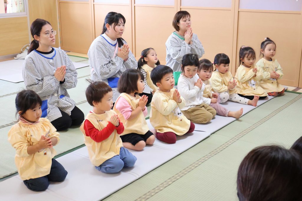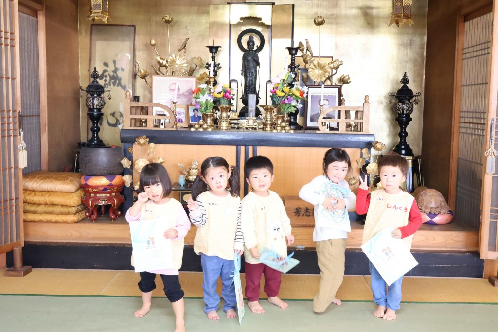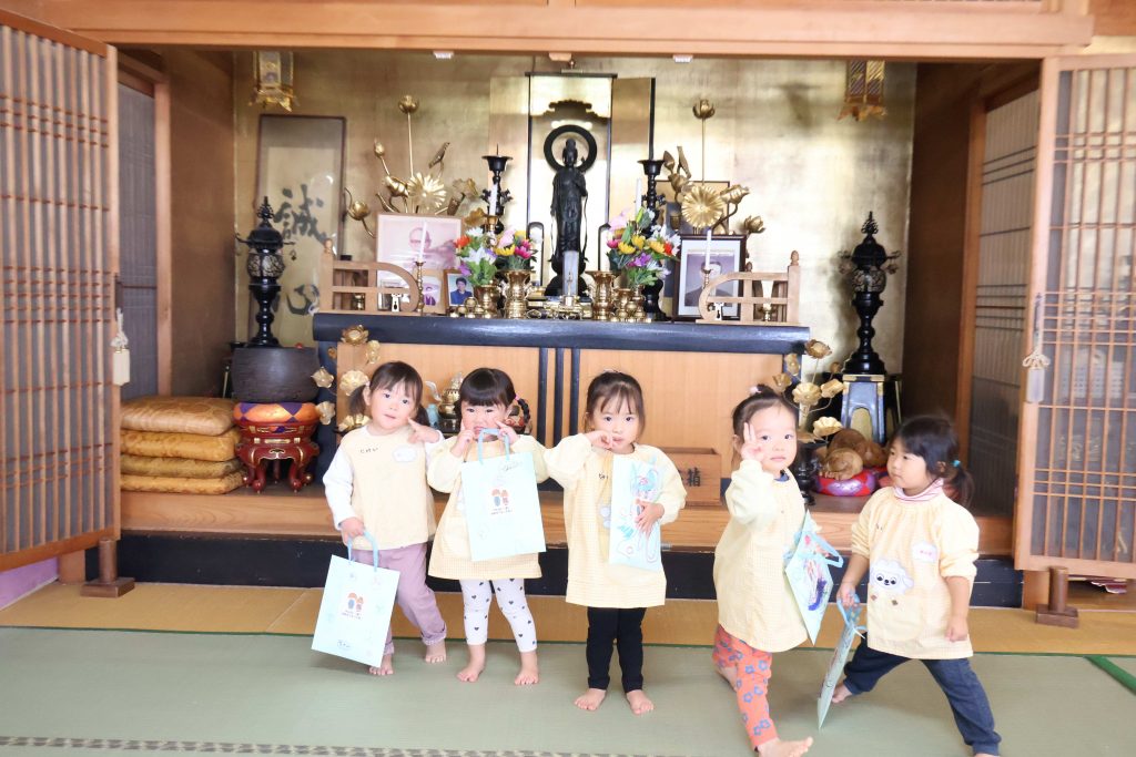 乳児クラス☆七五三の会 By sakura_dainijikei_master_adminOn 2025年11月14日In 園のできごと みんなでお釈迦様の前に座って、「大きくなれますように。」とお祈りしたと、七五三のお菓子をもらいました。