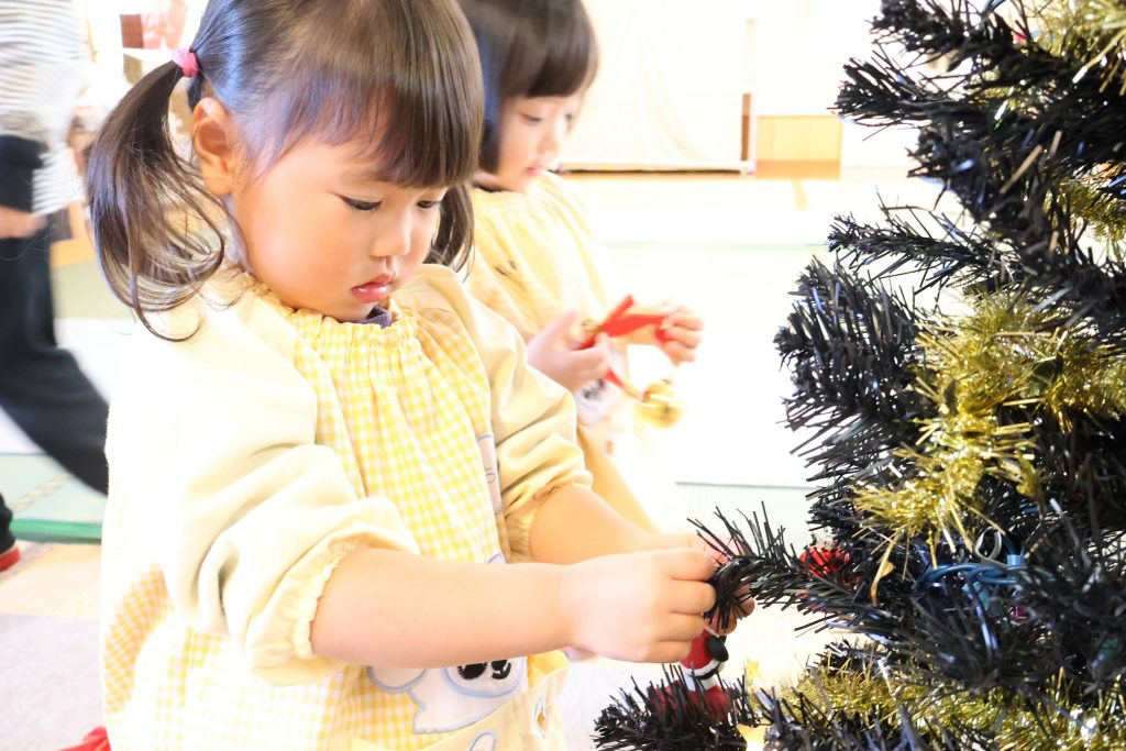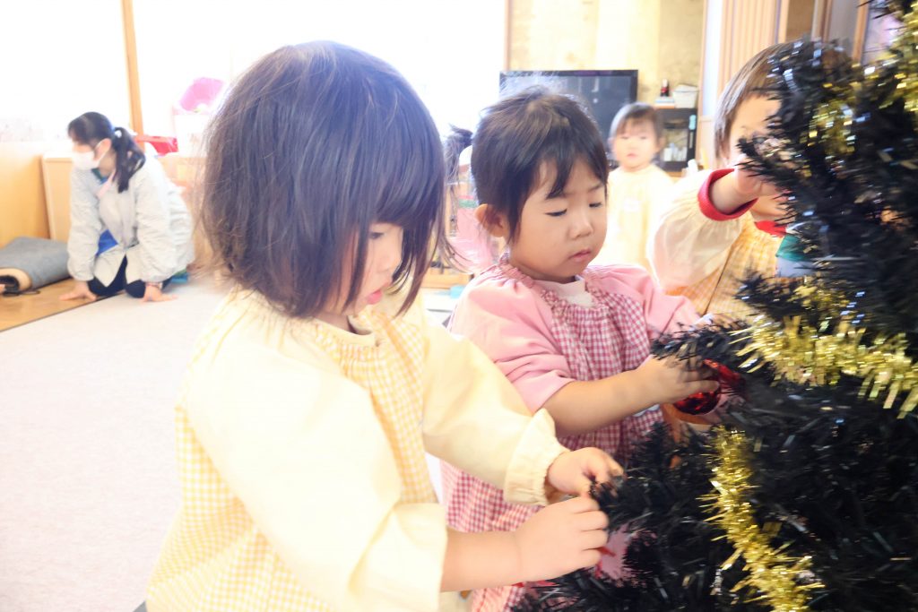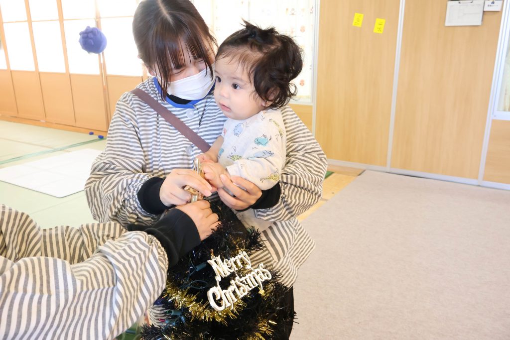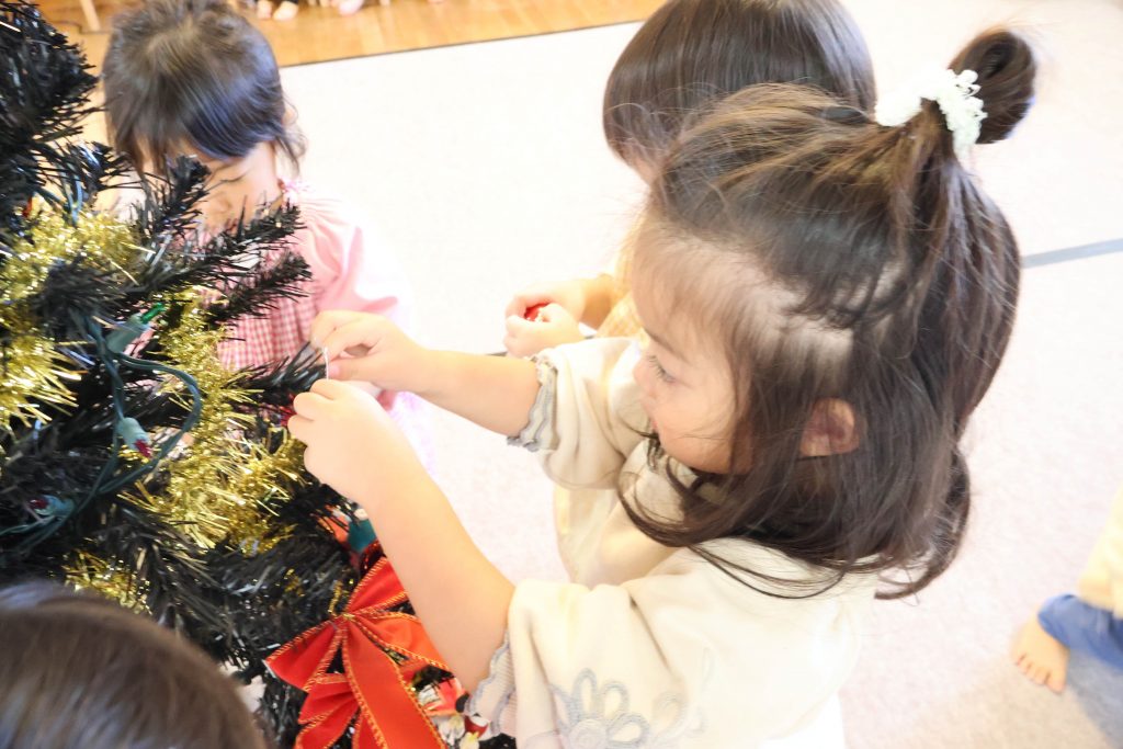 乳児クラス☆クリスマスツリーの飾り付け ぞう組 By sakura_dainijikei_master_adminOn 2025年12月9日In 園のできごと クリスマスツリーの飾り付けをしました。自分で好きなオーナメントを選んで、友達と一緒に飾り付け、「これでサンタさん来てくれるね」と言って、サンタさんが来てくれるのを心待ちにしています。最後は部屋を少し暗くし、点灯式もしました。