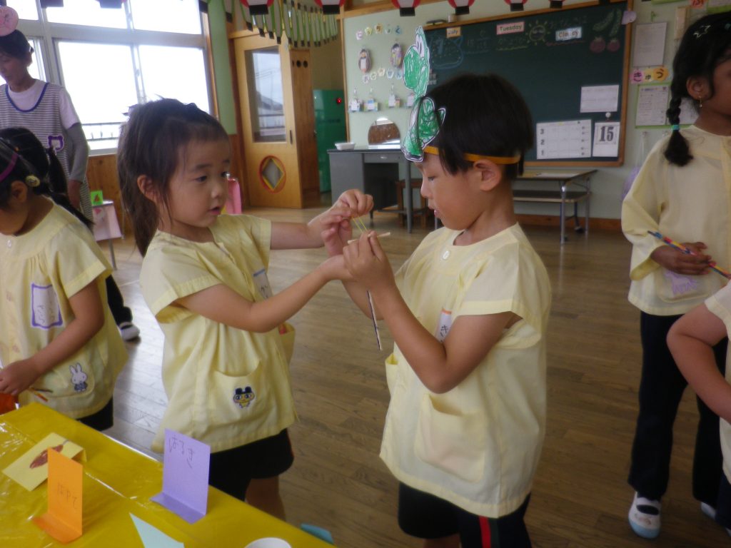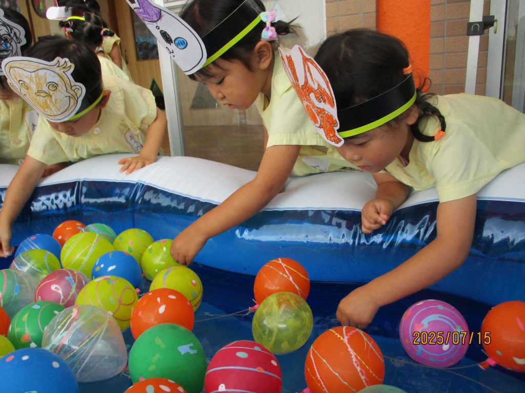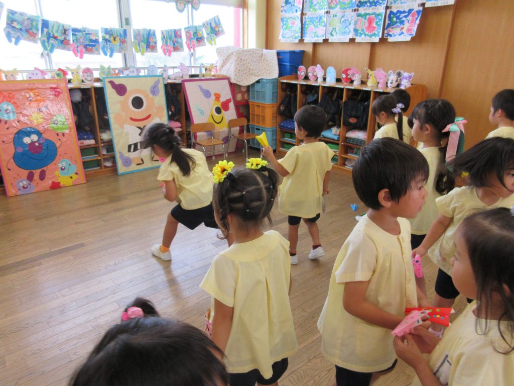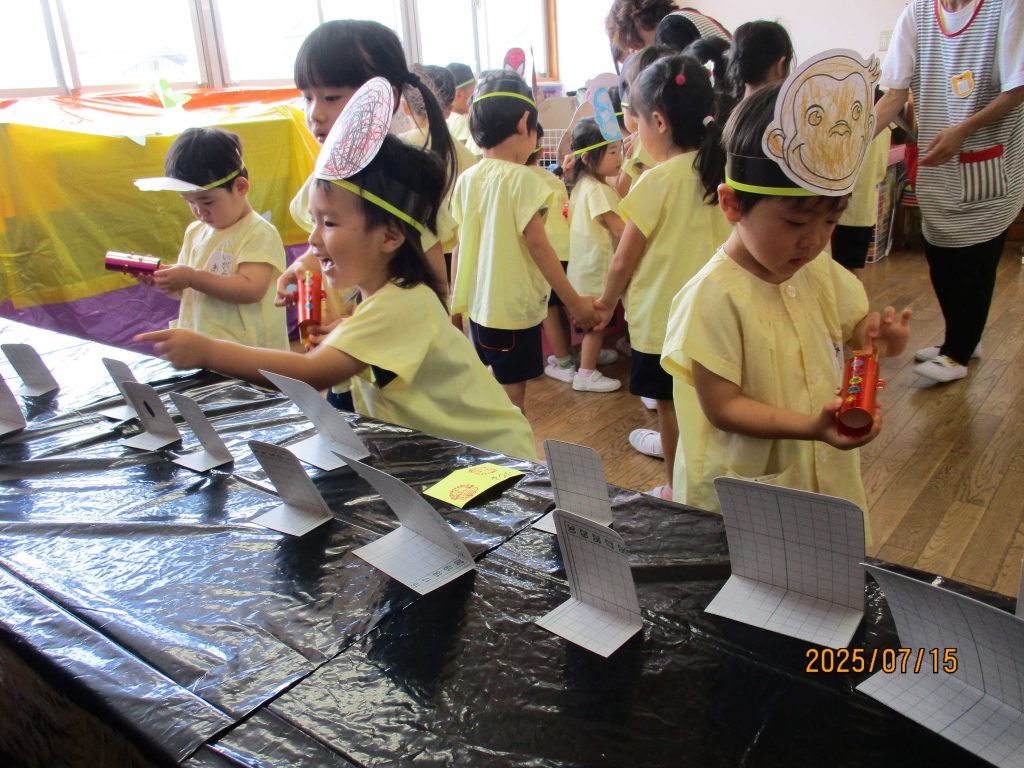 ☆夏祭り☆ By sakura_dainijikei_master_adminOn 2025年12月15日In 園のできごと 7月15日に夏祭りを行いました。 年長さんが作ってくれたゲームを年少さんや年中さんと一緒に楽しく遊びました。 またヨーヨー釣りをしたり、盆踊りをみんなで楽しく踊りました♪ 〈年少〉 〈年中〉 〈年長〉