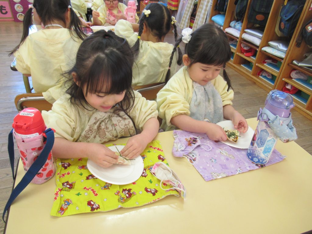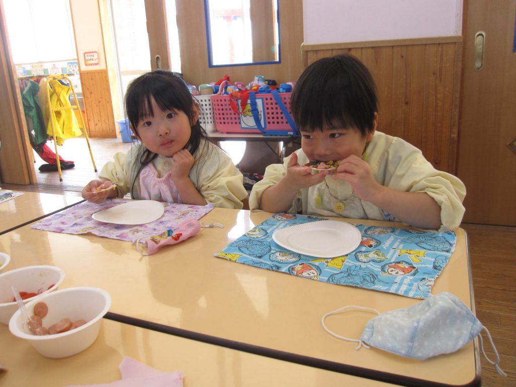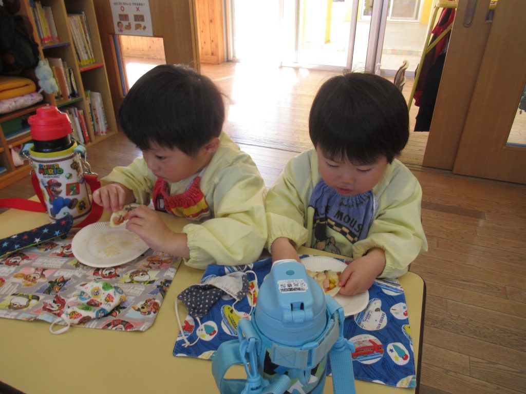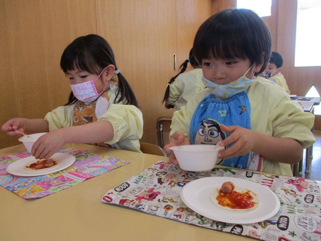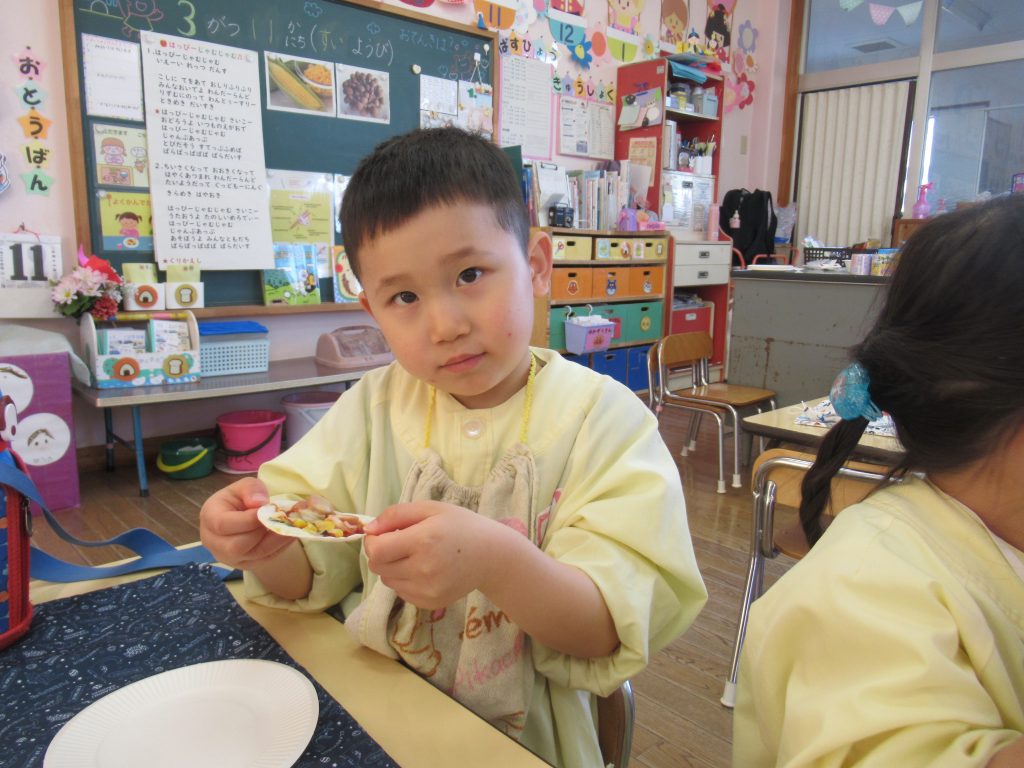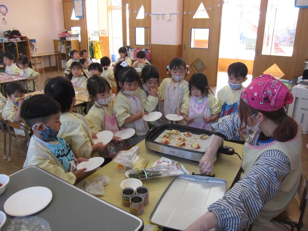 ピザパーティー☆年少 By sakura_dainijikei_master_adminOn 2026年3月12日In 未分類 餃子の皮を使ったピザ作りをしました。 クラスで好きな材料を選びコーンやトマト、しめじなどを入れて作りました。野菜が苦手な子も、自分で作ったピザは美味しく食べることができました♪ <あか> <あお> <きいろ> <もも>